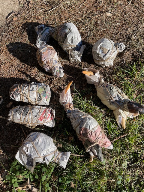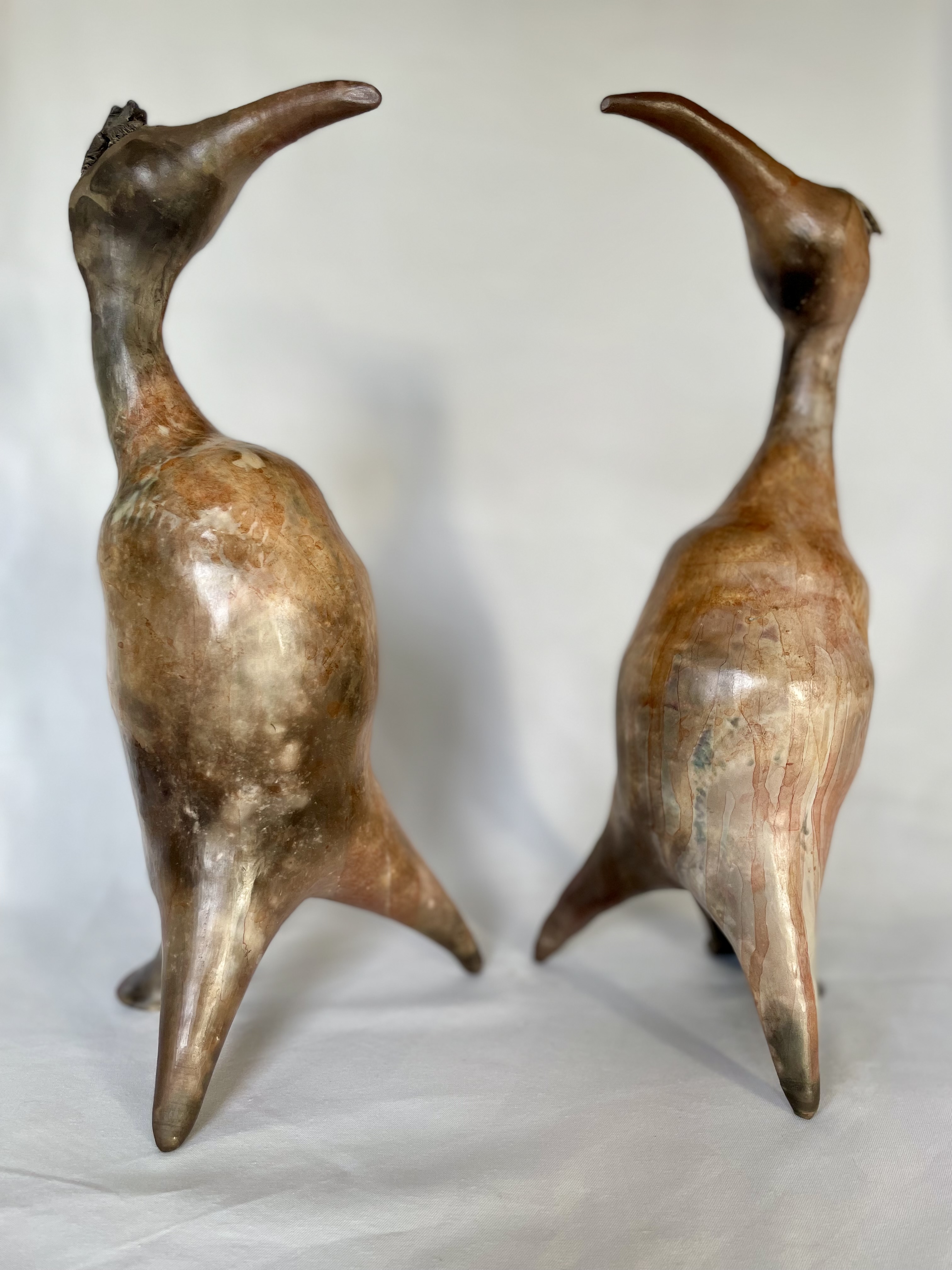 The stay in our house in France traditionally ends with a wood fire. It is always very exciting to see the results next morning, when the fire has cooled down. I often burn plants along with the wood, which sometimes leaves a recognisable mark on the work, as can be clearly seen on the right-hand owl above